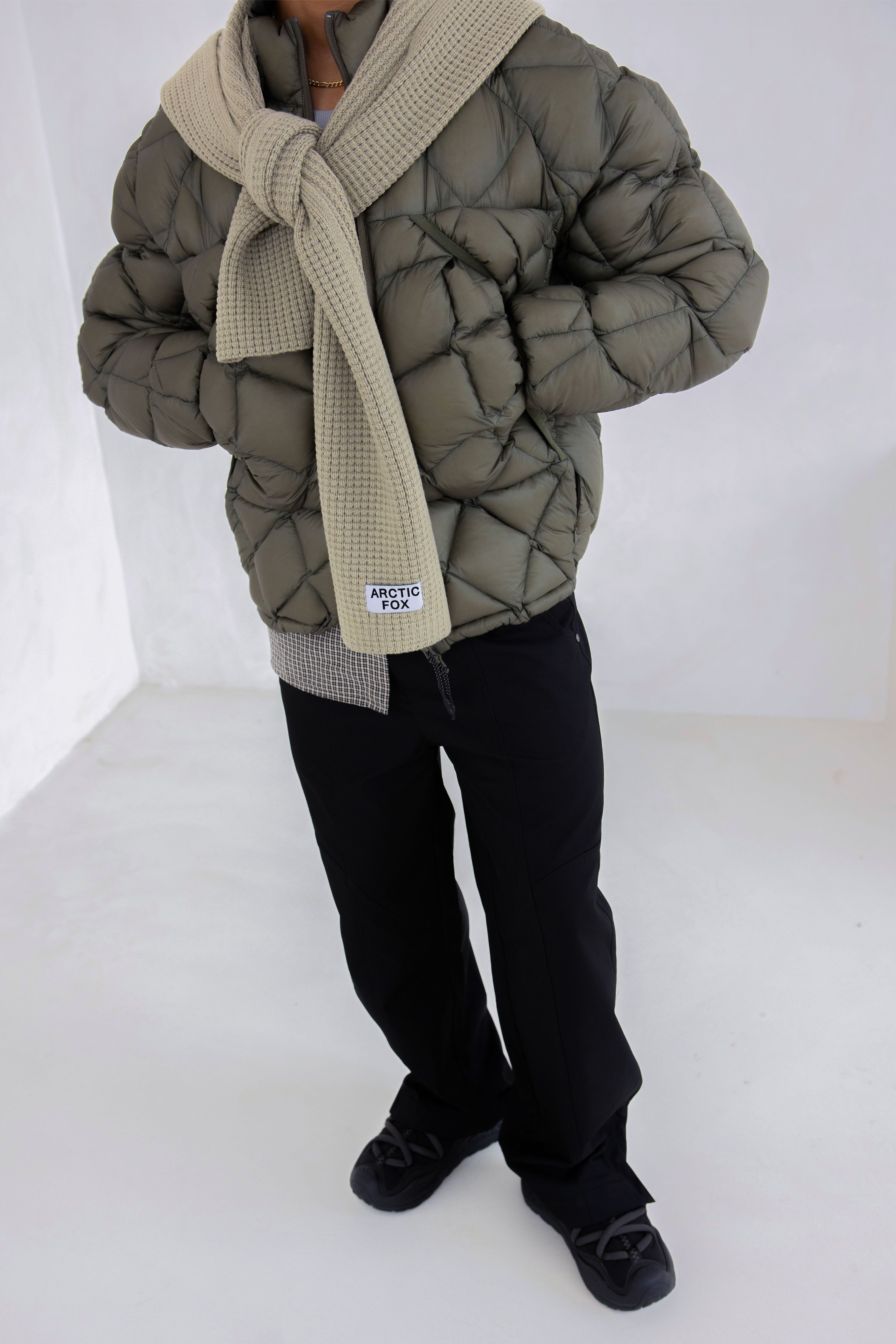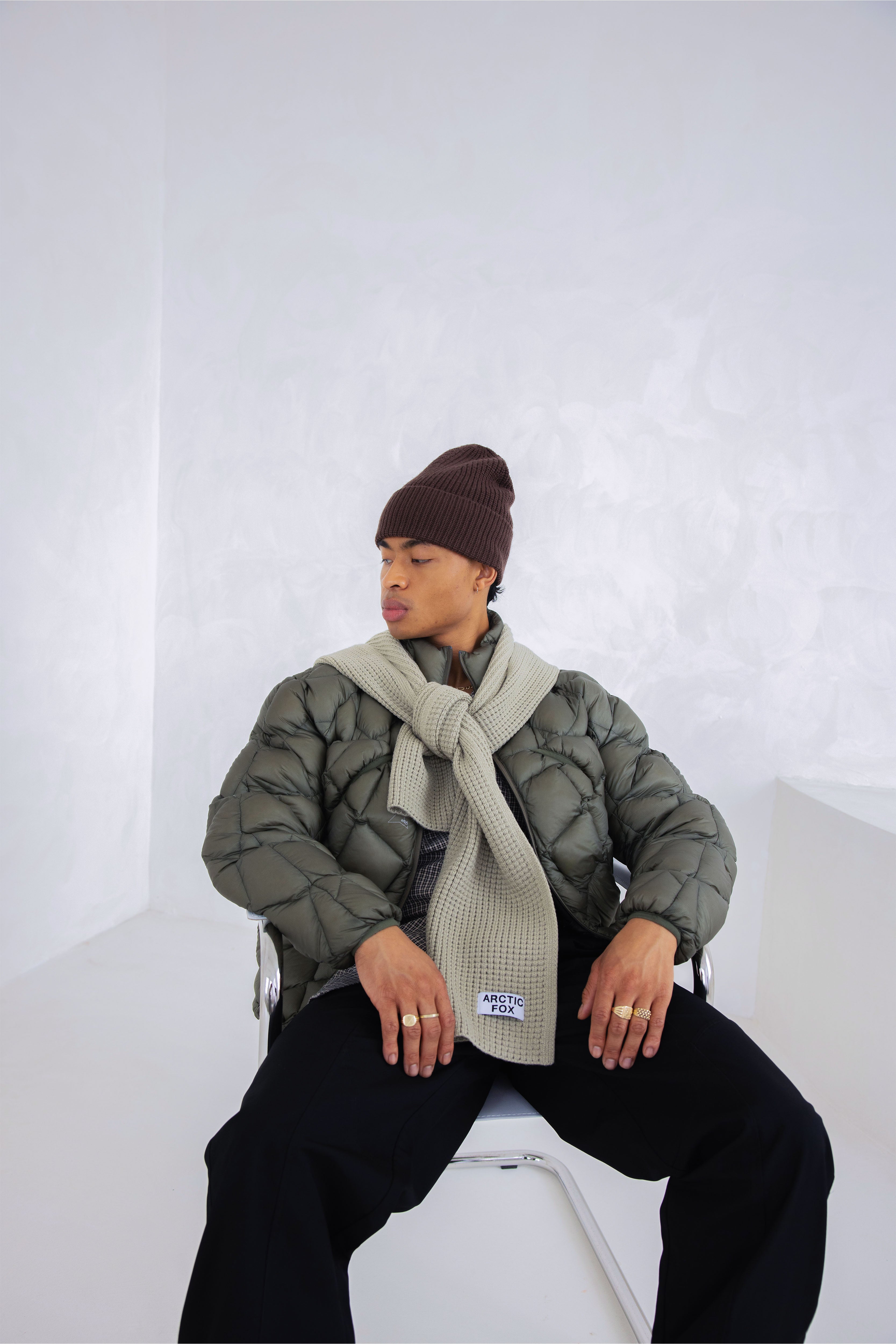 Made with recycled plastic bottles, this scarf helps to reduce global waste and instead repurposes it into a new beautiful, cosy winter scarf. Intricately crafted in a chunky-stretch soft material, it is designed to capture classic cosiness and modern, sustainable minimalism all knitted into one.