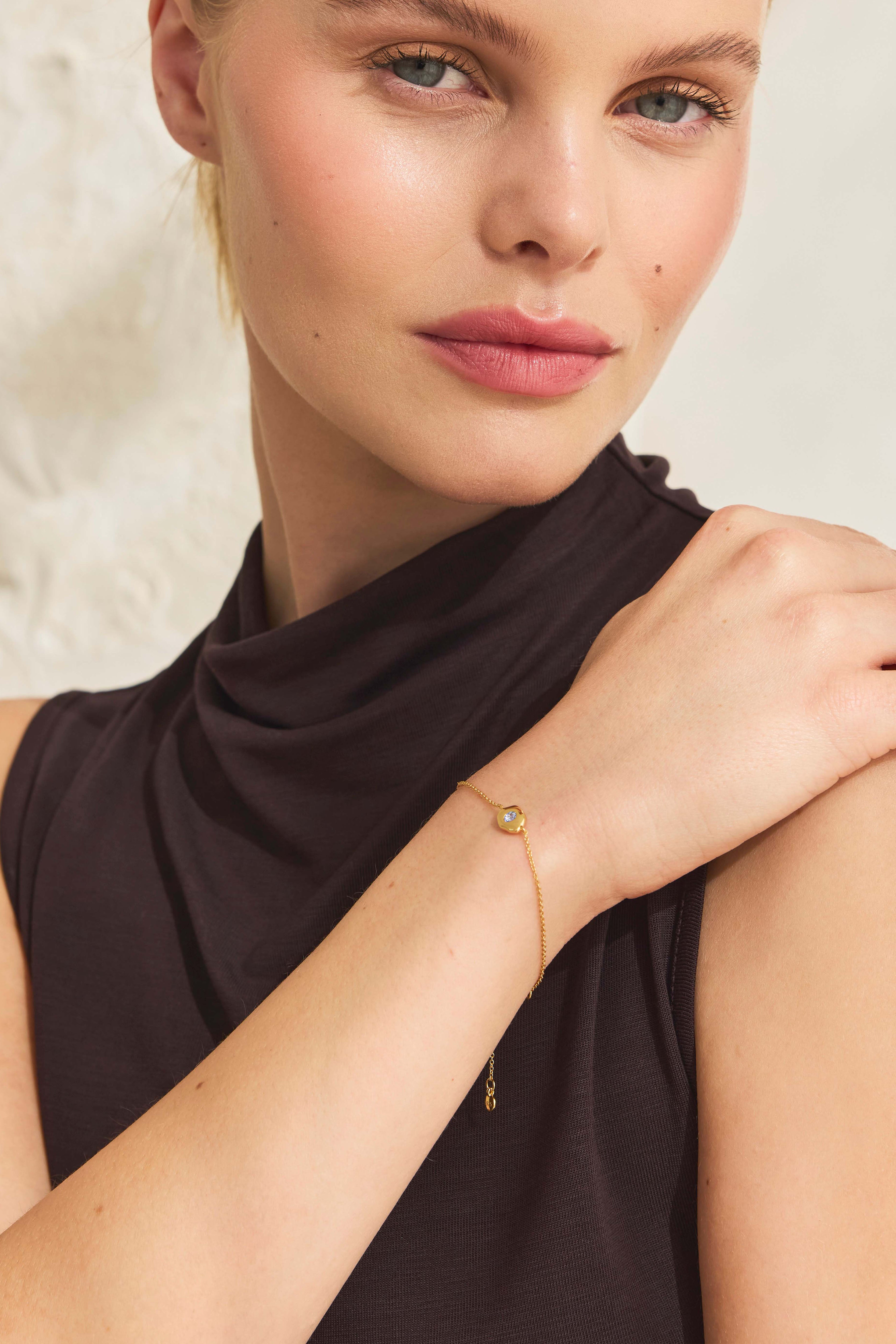 Finished with a fine, adjustable chain for a personalised fit.